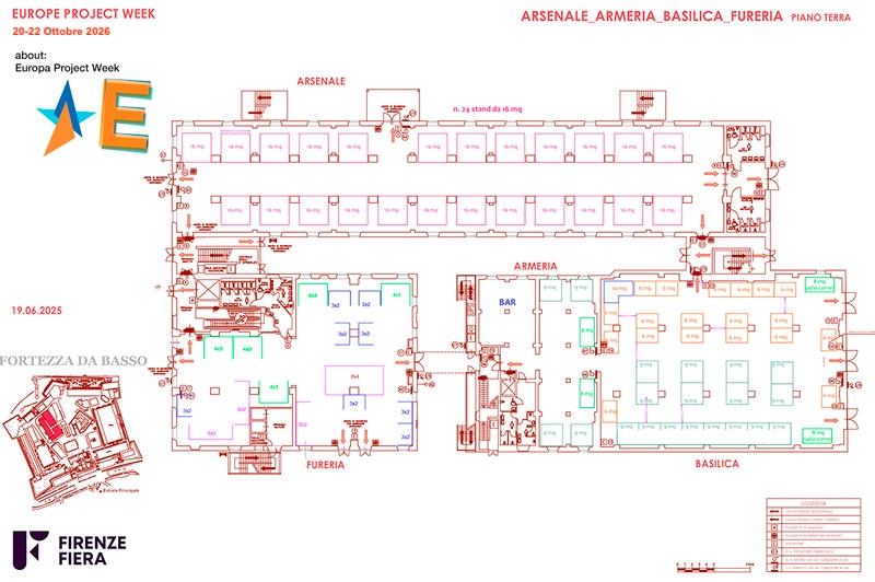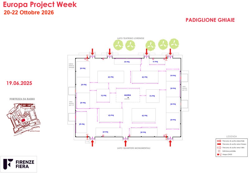 La mappa di EUPW 2026 negli spazi della Fortezza da Basso – Firenze Fiera